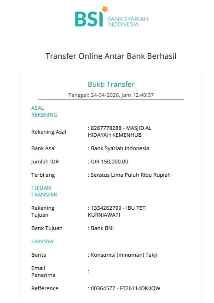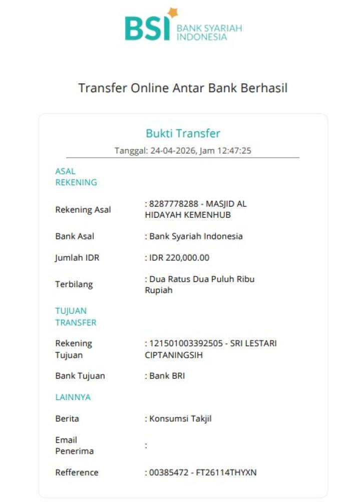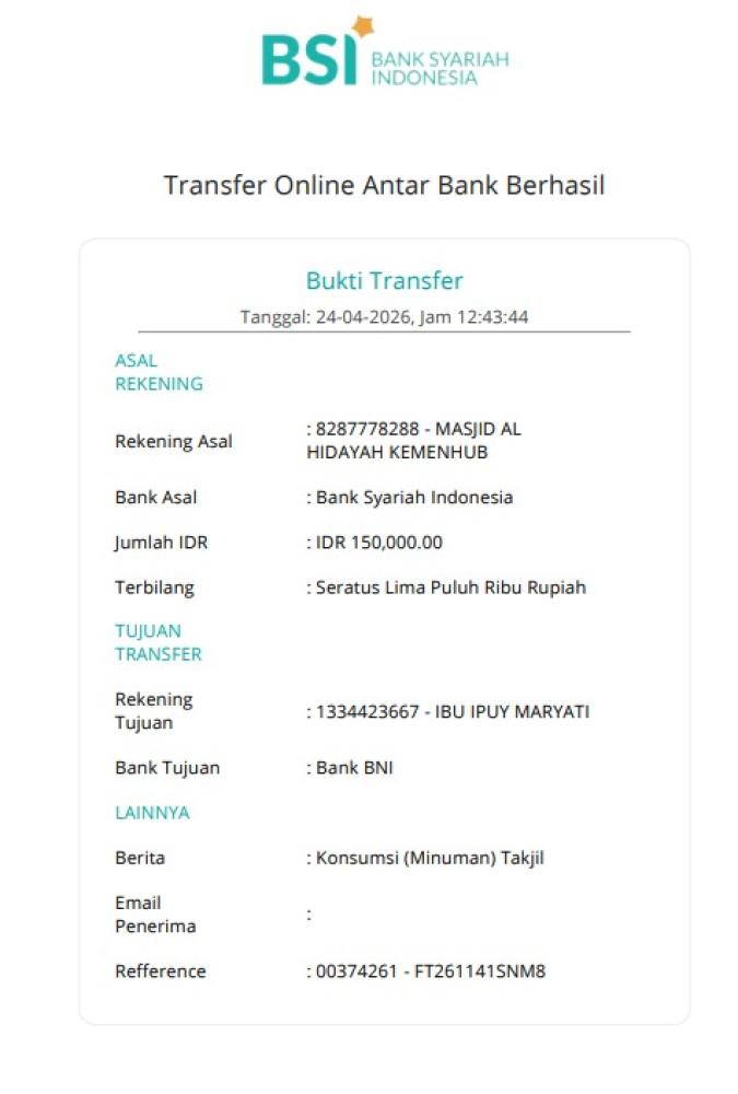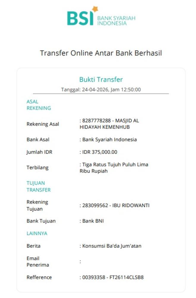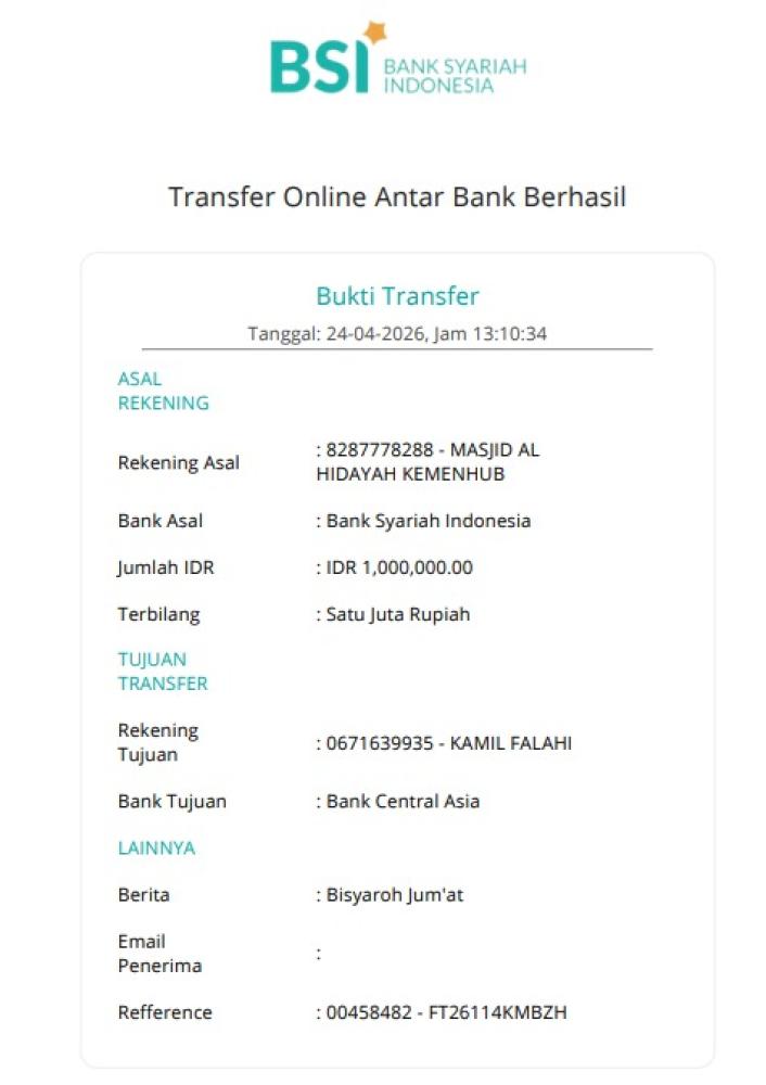 | 2026-04-24 | 1 Bisyaroh Khatib Jum'at Ustadz KAMIL FALAHI | 1.000.000,00 | ||