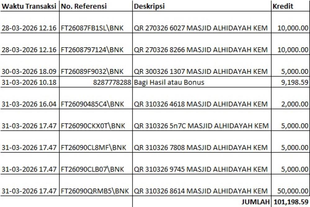 | 2026-04-10 | 1 Bisyaroh Khatib Jumat 12 April - Ustadz Iding Rosyidin | 1.000.000,00 | ||
