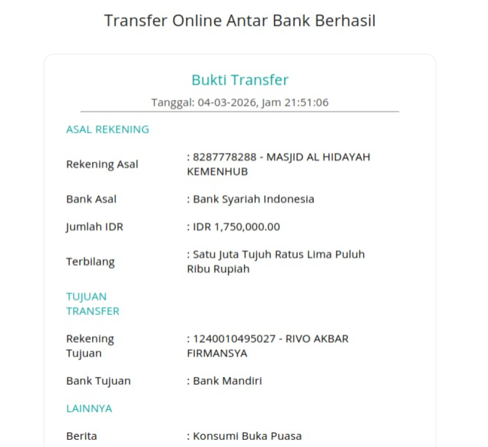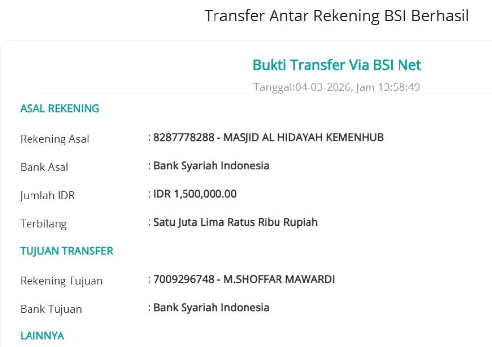 Infaq QRIS atau Transfer Melalui Rek BSI Masjid